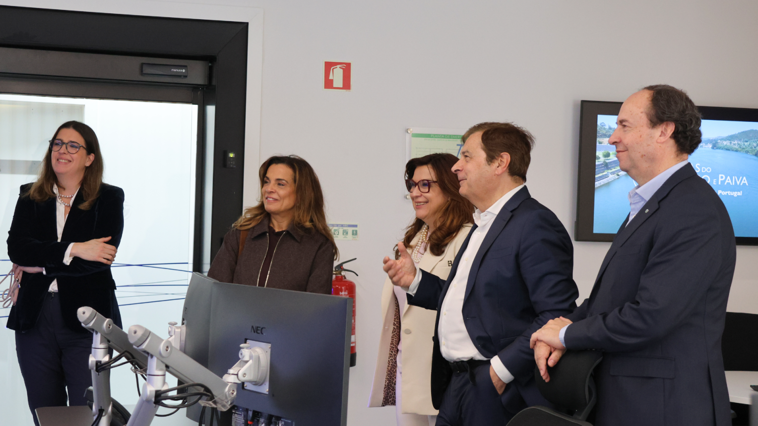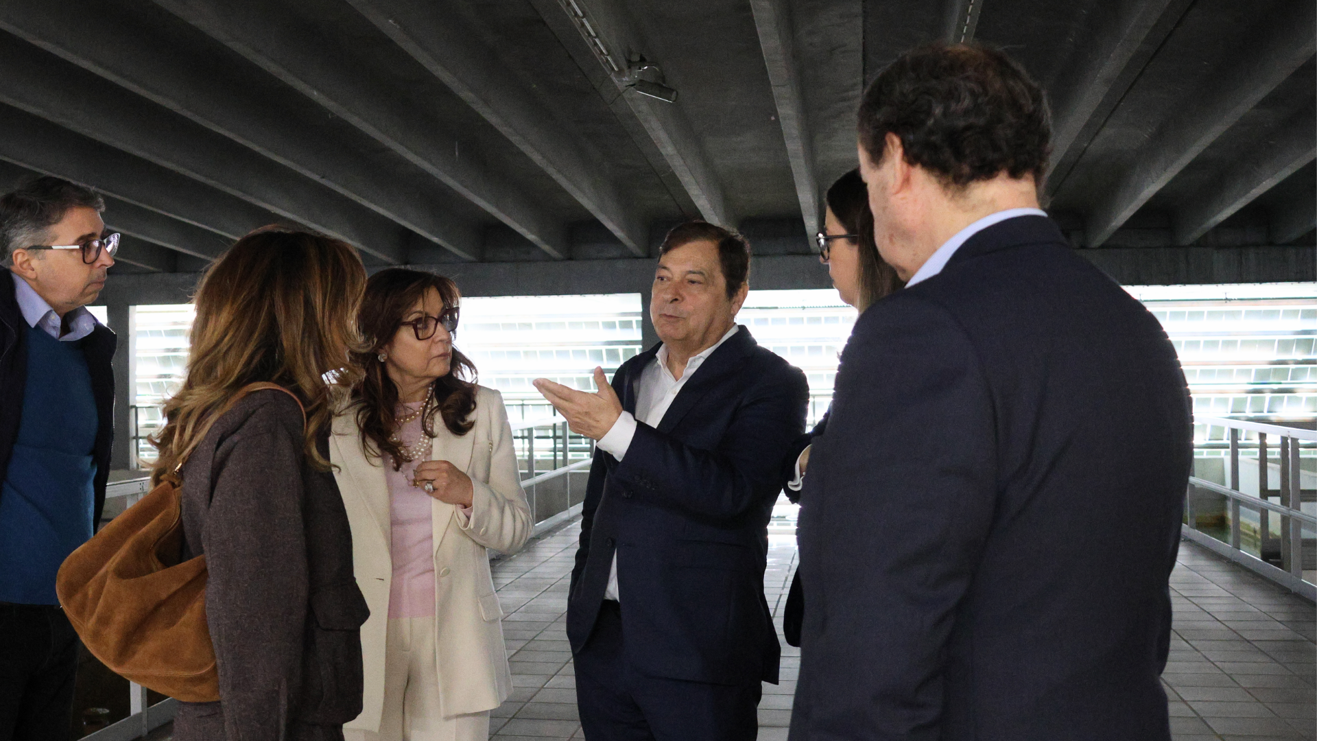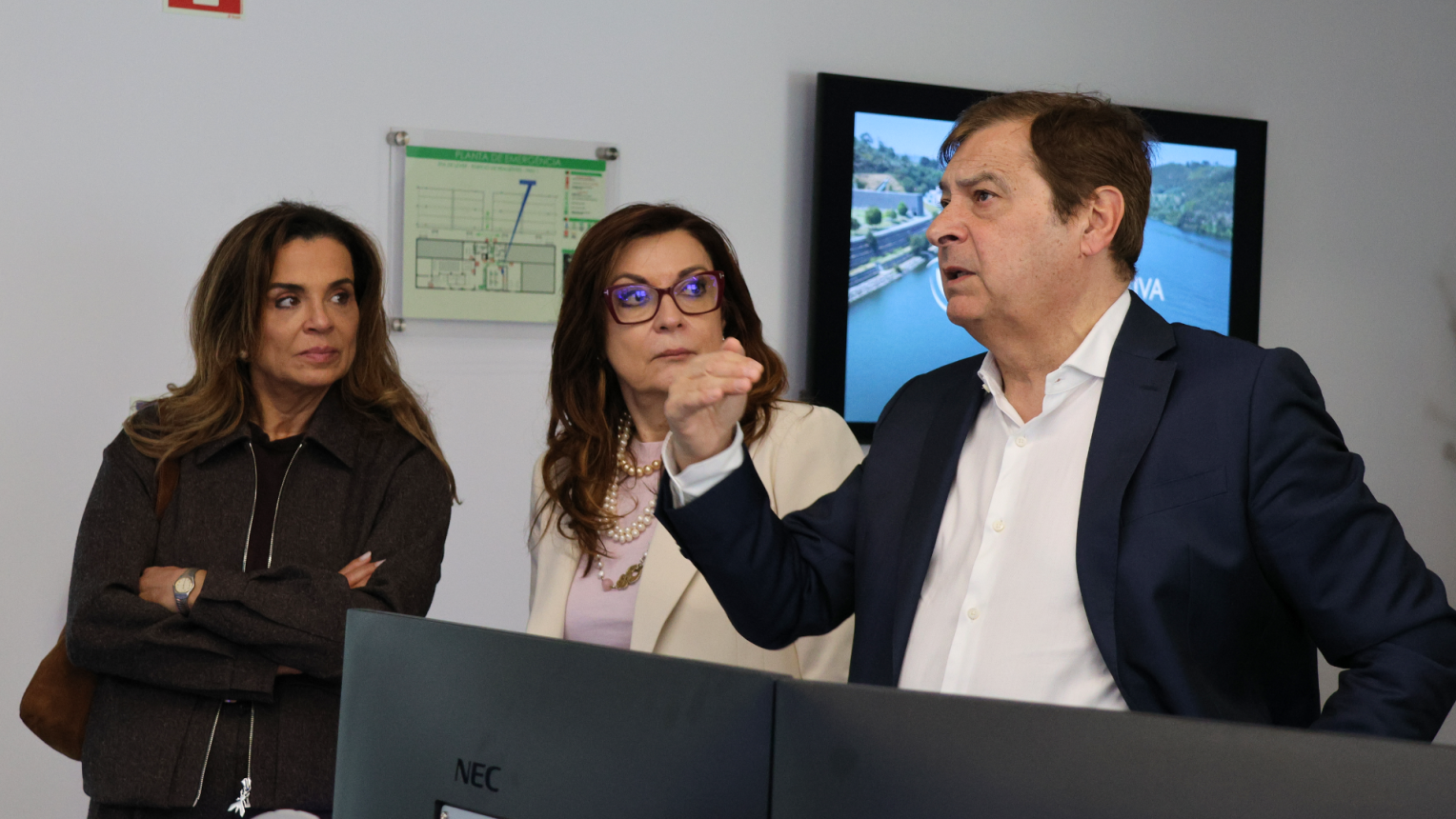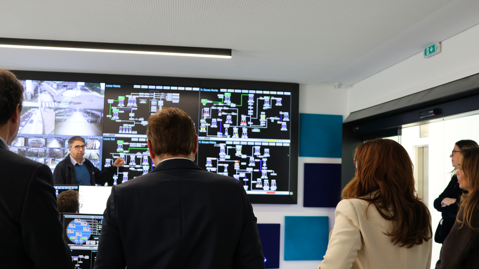 Ao longo do percurso pelas instalações, a comitiva visitou a nova Sala de Comando, onde foram apresentados os sistemas de supervisão e controlo, com destaque para a telegestão totalmente virtual, bem como as soluções de automação e de inteligência artificial que contribuem para reforçar a eficiência, a segurança e a resiliência do sistema de abastecimento.